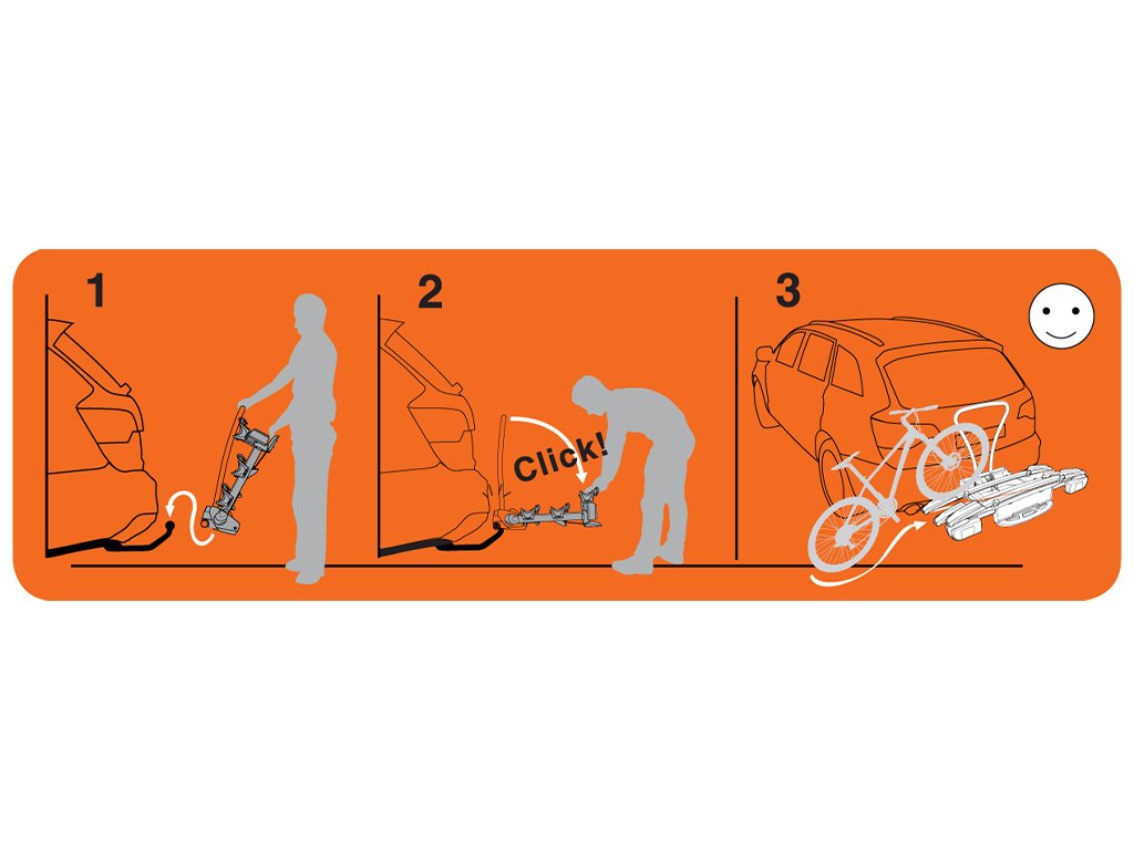 • Stačí jednoducho rozložiť (fold) a nacvaknúť (click) a môžete upevňovať bicykle.