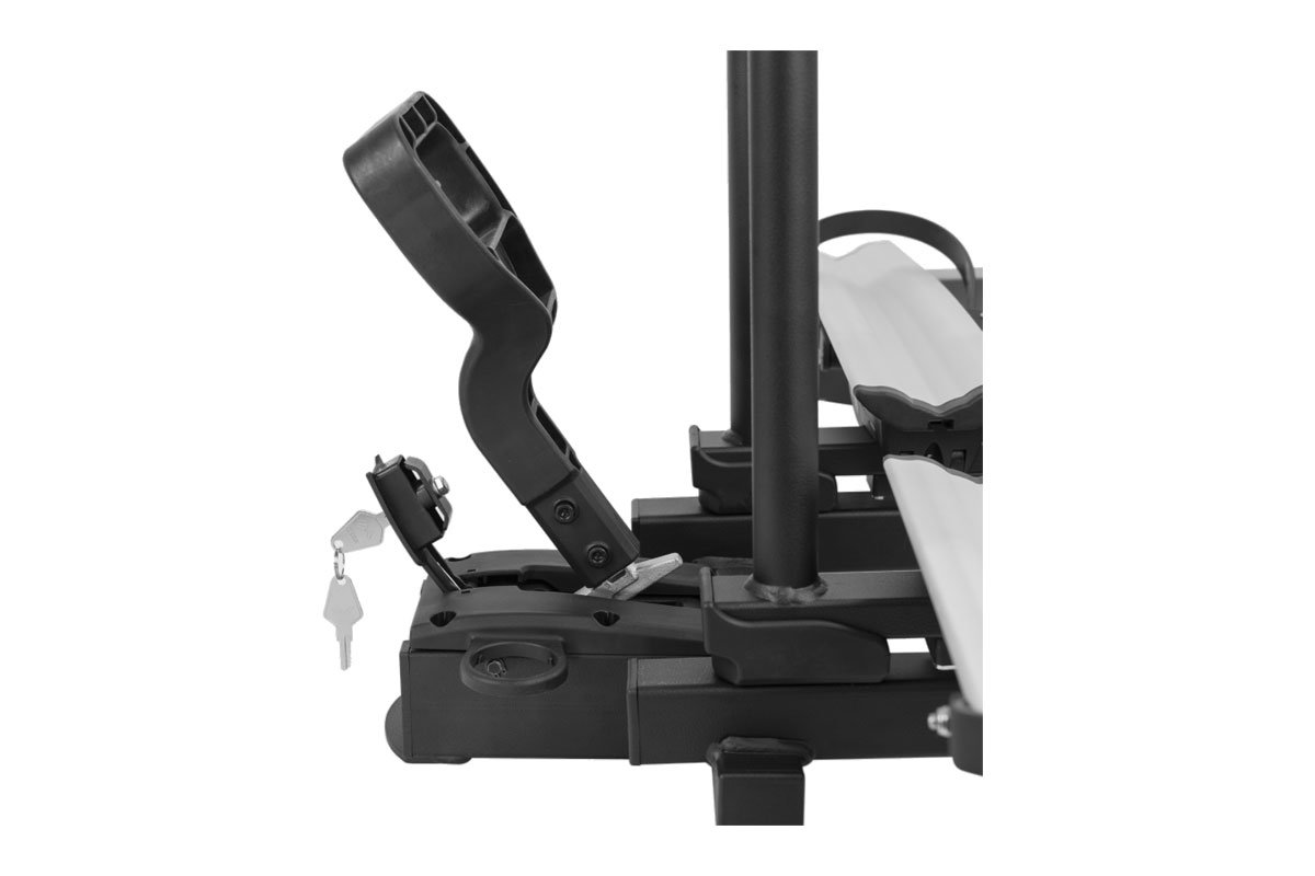 - Sklopná funkcia s možnosťou sklopenia aj s namontovanými bicyklami pre ľahký prístup do batožinového priestoru vozidla cez piate dvere.