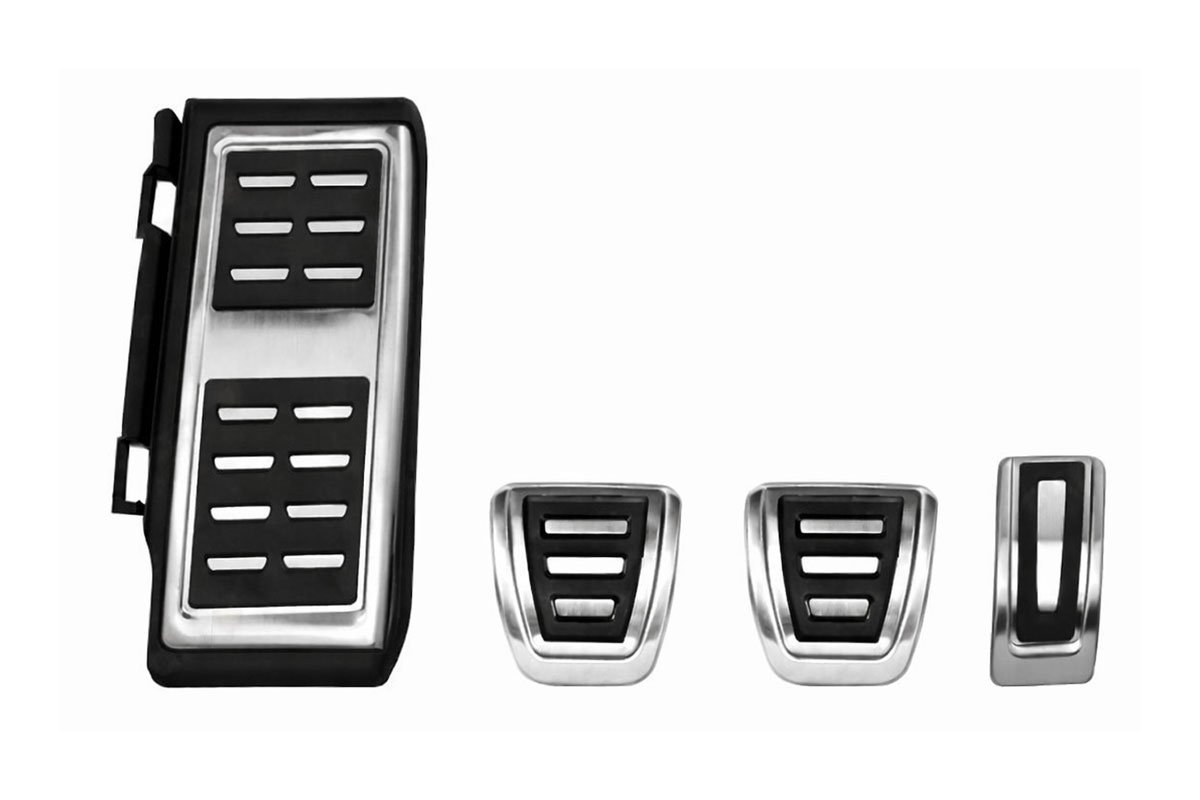 Športové kryty pedálov určené na nasadenie na originálne pedále. Vyrobené z kvalitnej protišmykovej gumy a nehrdzavejúcej ocele, presne na mieru daného typu automobilu. Pre vozidlá nižšie uvedené s manuálnou prevodovkou. Balenie obsahuje 4 ks: pedál plynu, brzdy, spojky a kryt priestoru podbehu pre ľavú nohu.